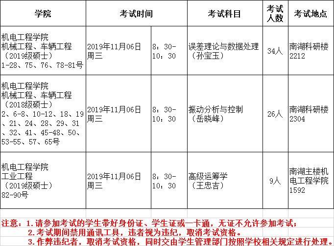 yl23411永利官网2019—2020—1前半学期研究生课程考试安排