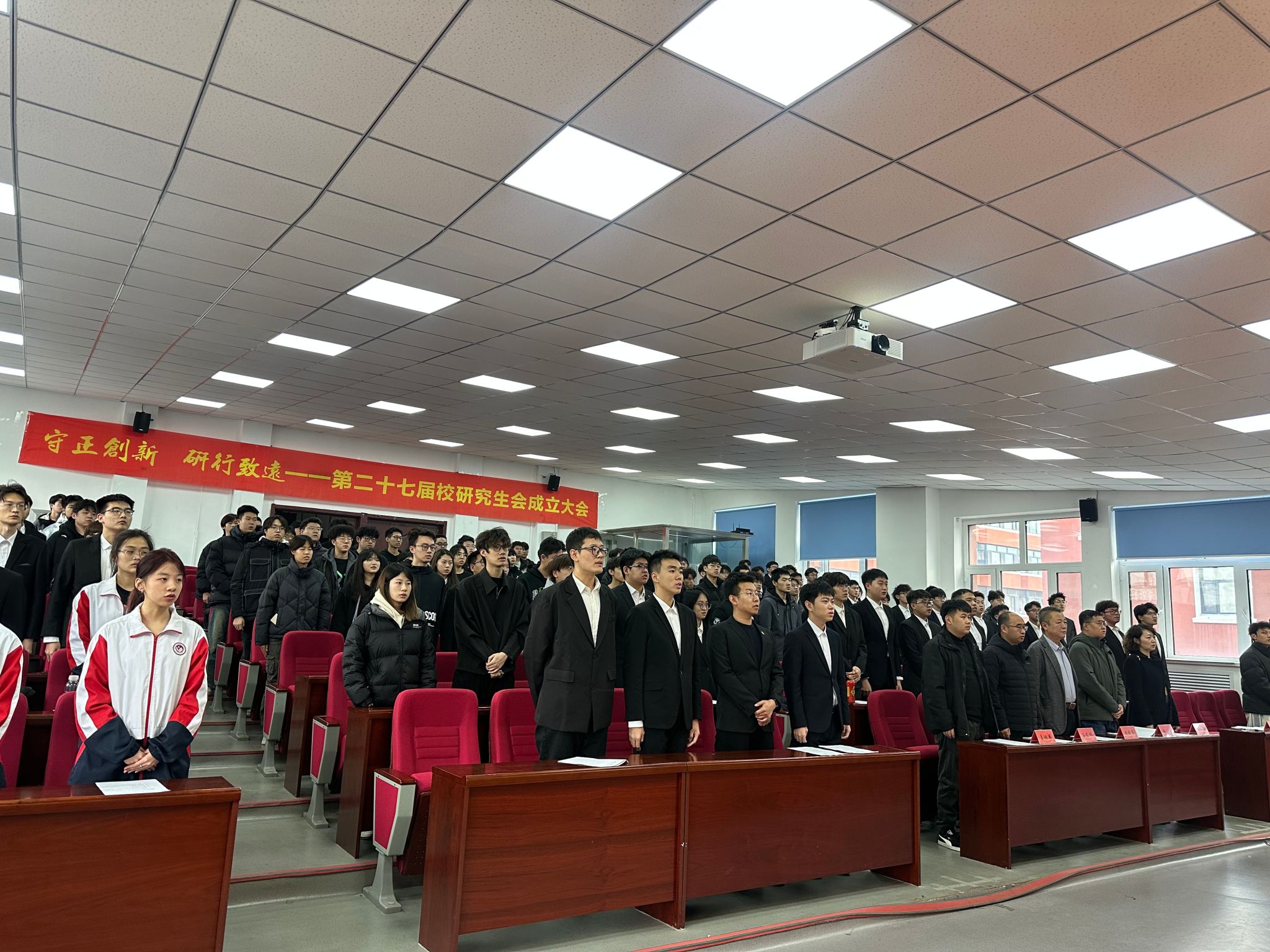 伴随着校歌激扬的旋律,公司第五十四届团委、员工会成立大会暨第八届研究生会成立大会圆满结束。