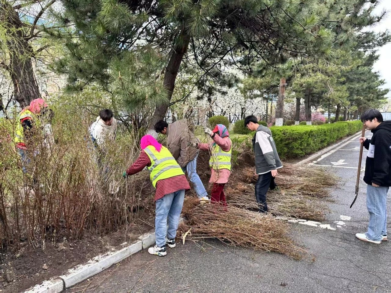 活动中,志愿者们分工协作,在工作人员的指导下挥锹铲土、扶苗填坑、浇水培土,认真完成每一道植树工序。大家默契配合,用实际行动为校园增添新绿,展现了机电学子踏实肯干的劳动风貌。