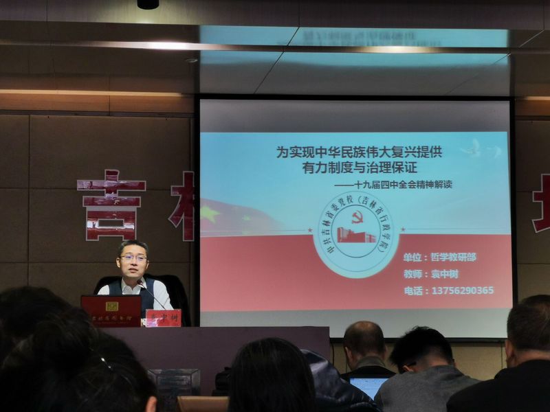 本网讯(通讯员刘心悦)12月1日下午,yl23411永利官网MMDS学会在吉林省图书馆参加“为实现中华民族伟大复兴提供有力制度与治理保证——党的十九届四中全会精神解读讲座”活动。入党申请人培训班部分学员参加了此次活动。此次活动由中共吉林省党委校哲学教研部副教授,哲学博士袁中树主讲。