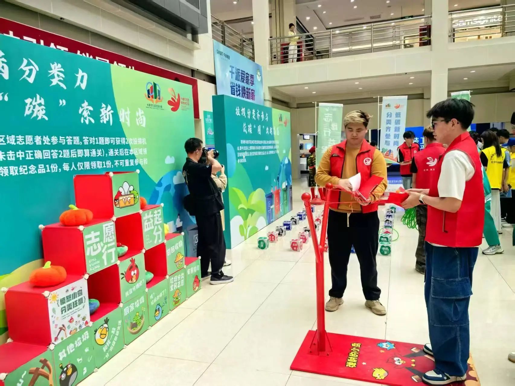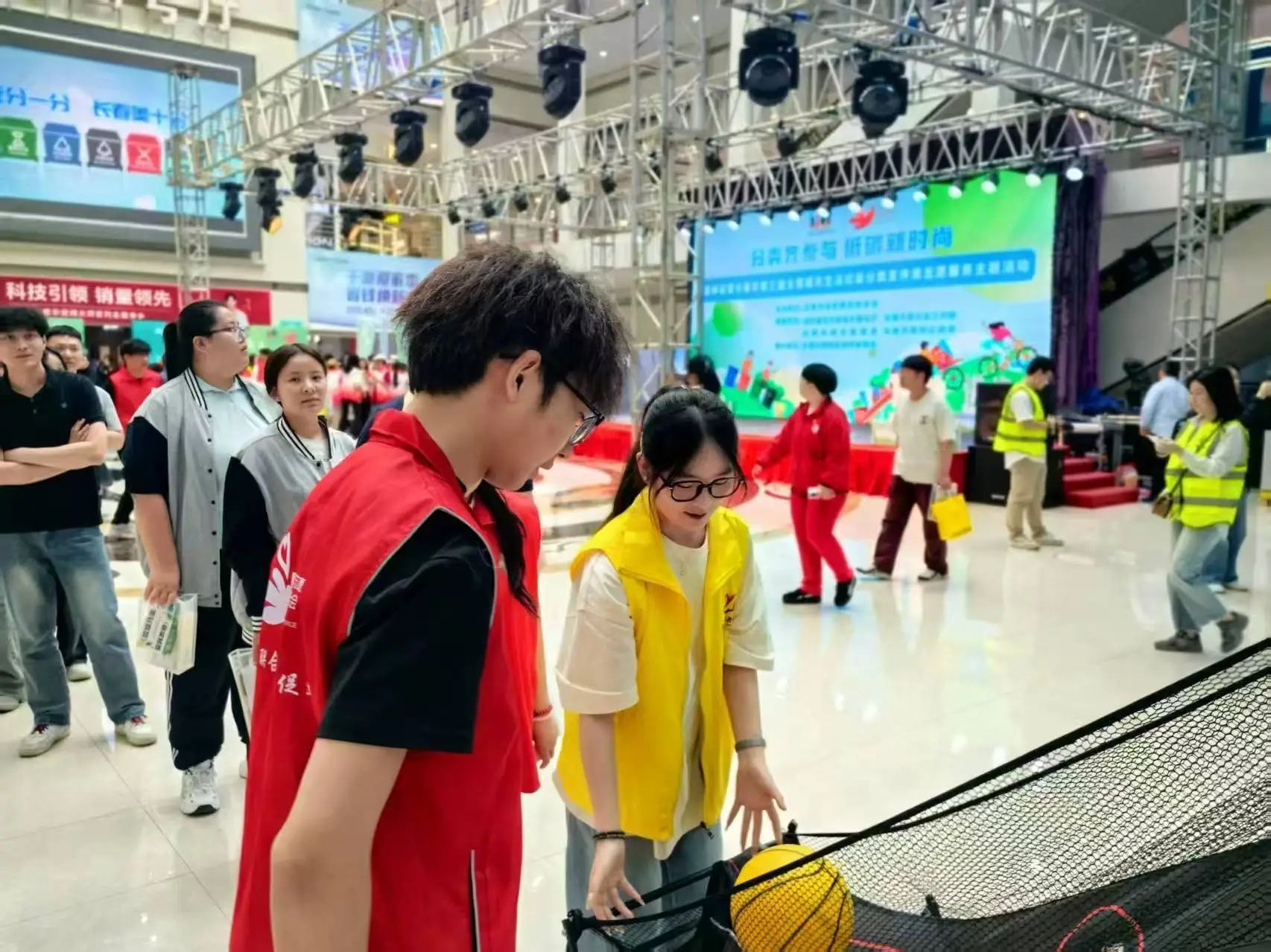 活动当日,欧亚卖场内人头攒动,热闹非凡。春雨志愿者们迅速投身志愿服务,以专业与热情的态度,有序维护现场秩序,引导市民分流参观各展区,保障活动平稳进行。同时,志愿者们还精心组织了趣味十足的垃圾分类小游戏。