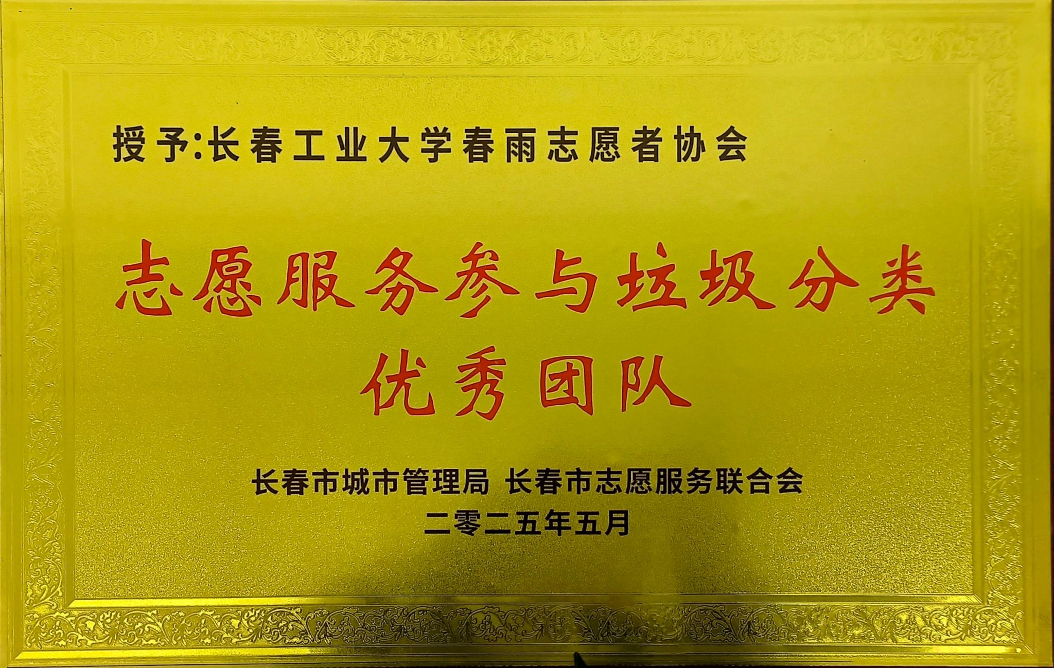本网讯(通讯员 王梓羽)5月23日,在“分类齐参与 低碳新时尚”吉林省暨长春市第三届全国城市生活垃圾分类宣传周志愿服务主题活动中,春雨志愿者协会凭借在垃圾分类志愿服务中的优秀表现,荣获长春市城市管理局与长春市志愿服务联合会颁发的“志愿服务参与垃圾分类优秀团队”称号。颁奖活动在长春市欧亚卖场盛大举行,公司作为受邀单位,与众多志愿者团队共同为推动垃圾分类、倡导绿色生活贡献力量。