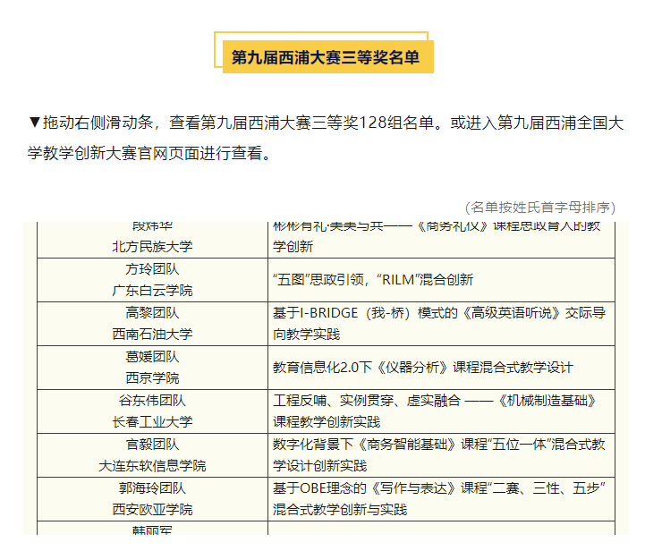 本网讯(通讯员 毛艳313日,西浦全国大学教学创新大赛组委会公布了第九届西浦全国大学教学创新大赛获奖名单,公司教师谷东伟带领的机械制造基础课程教学团队荣获三等奖。
