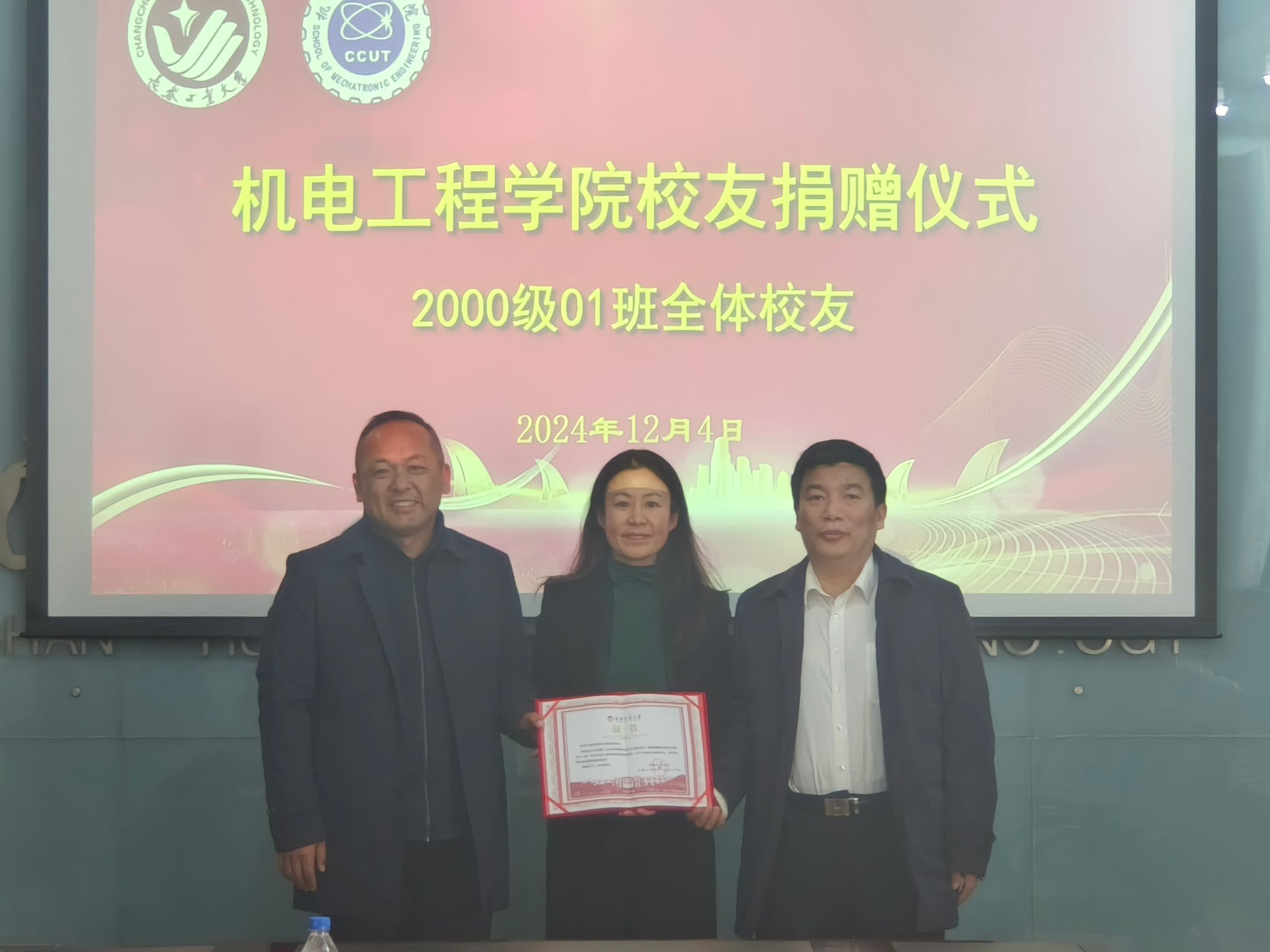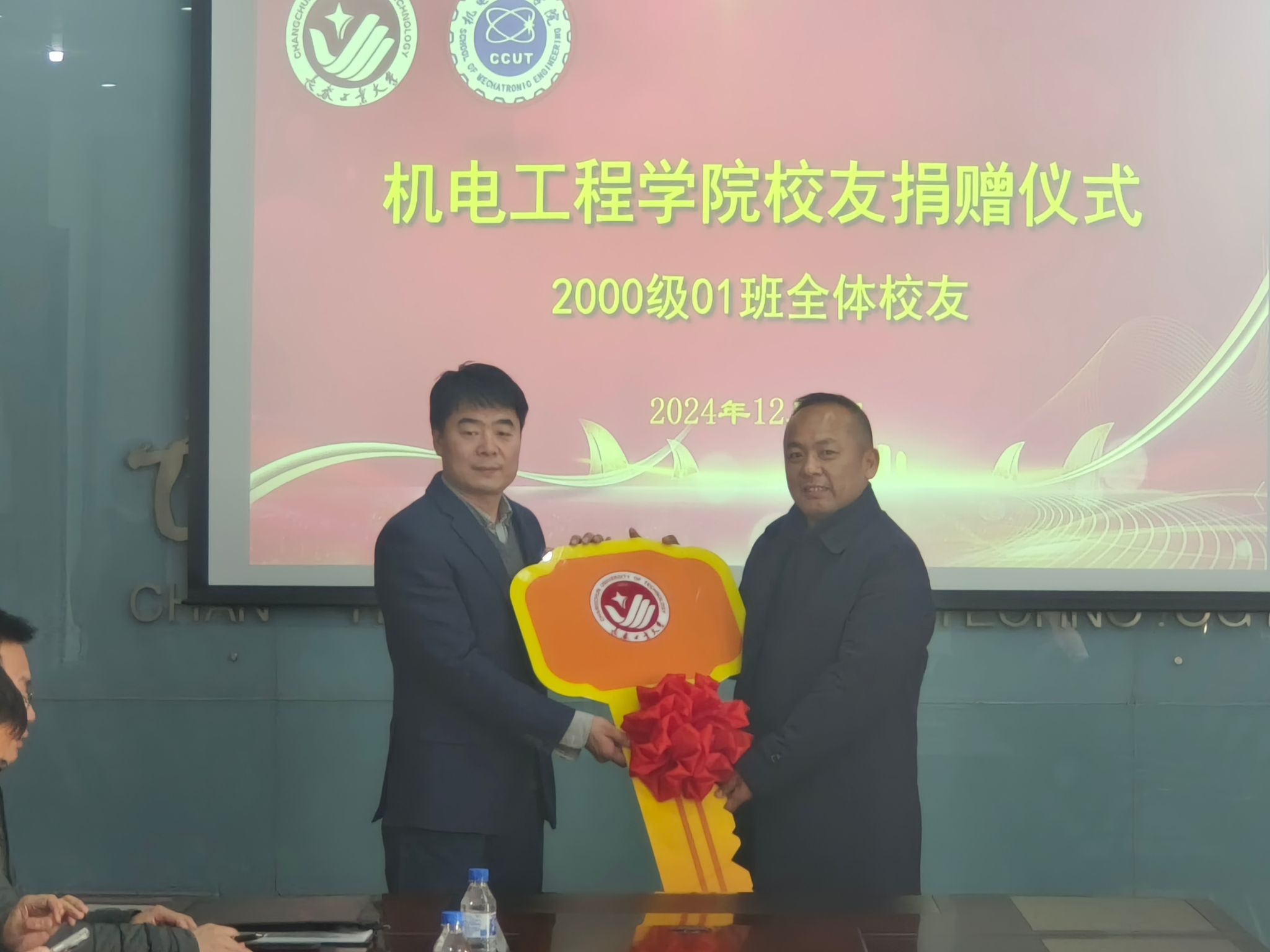 捐赠仪式上,张利军对员工的慷慨捐赠表示了衷心的感谢,刘占国代表2000级01班全体员工向yl23411永利官网赠送汽车钥匙模型,李东玲代表yl23411永利官网向员工赠送捐赠证书。