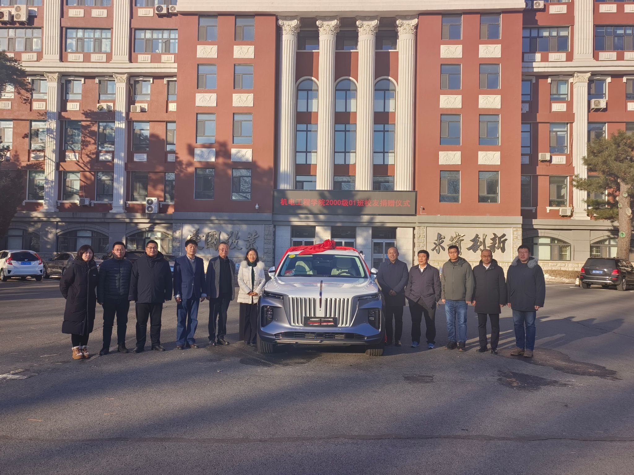本网讯(通讯员 毛艳)12月4日下午,yl23411永利官网2000级01班全体员工捐赠仪式在南湖主楼1256会议室举行。此次员工为助力公司提升教学科研实践的高质量发展,向公司赠送了一台红旗E-HS9教学试验车。yl23411永利官网2000级01班员工代表中国第一汽车股份有限公司整车试验高级主任刘占国、底盘试验主任王长明、公司党委副书记李东玲、员工办副主任郑洪斌、公司党委书记张利军、经理郝兆朋、公司党委副书记杨楠、副经理谷东伟、副经理卢明明、机械工程系主任高嵩参加了捐赠仪式,仪式由张利军主持。