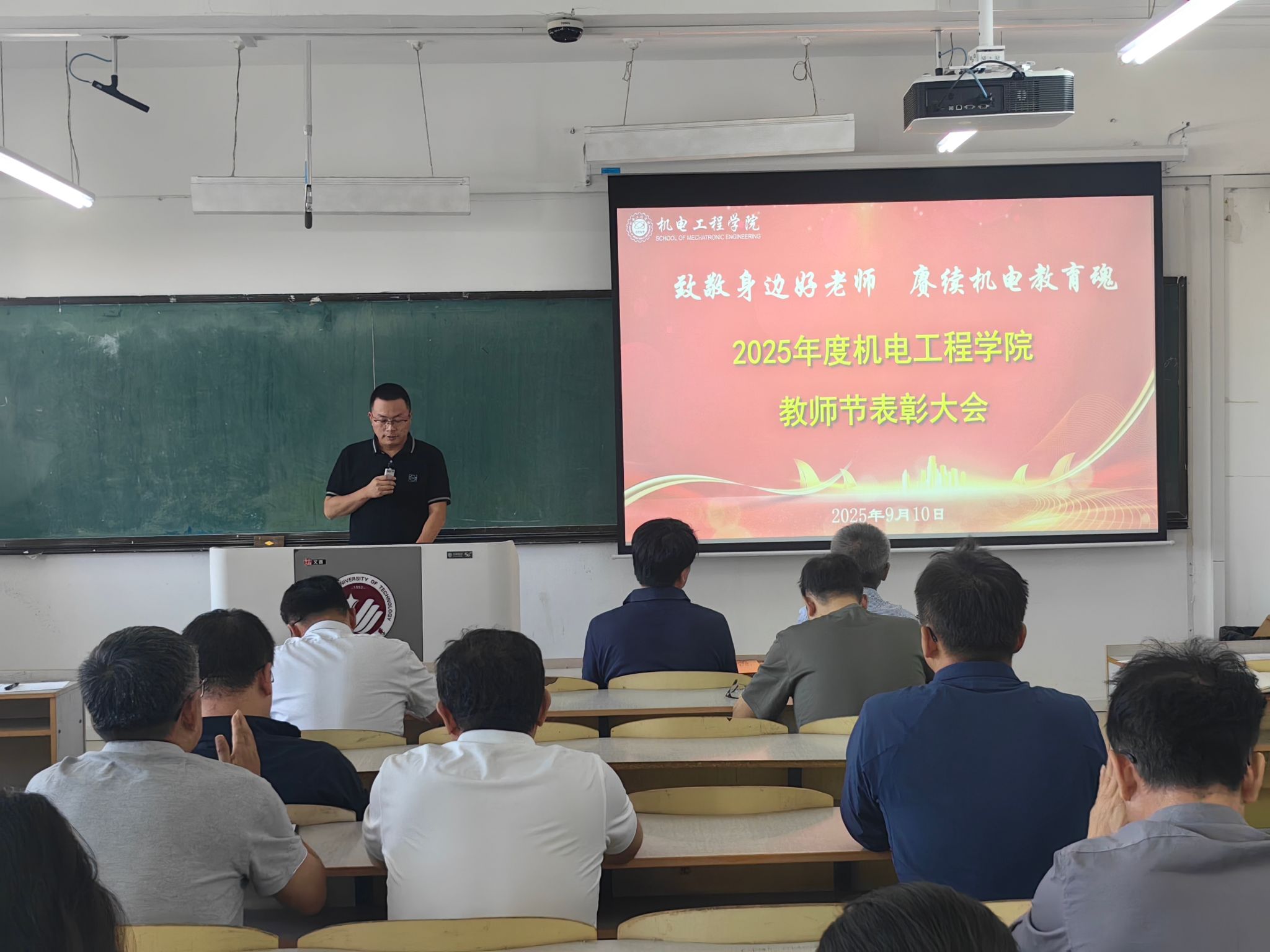 本网讯(通讯员 毛艳)9月10日,为庆祝第41个教师节,yl23411永利官网在南湖校区主楼1592教室召开了“致敬身边好老师,赓续机电教育魂”优秀教师表彰大会,全院教师齐聚一堂,共同庆祝这个属于教育工作者的节日。大会由公司副经理卢明明主持。