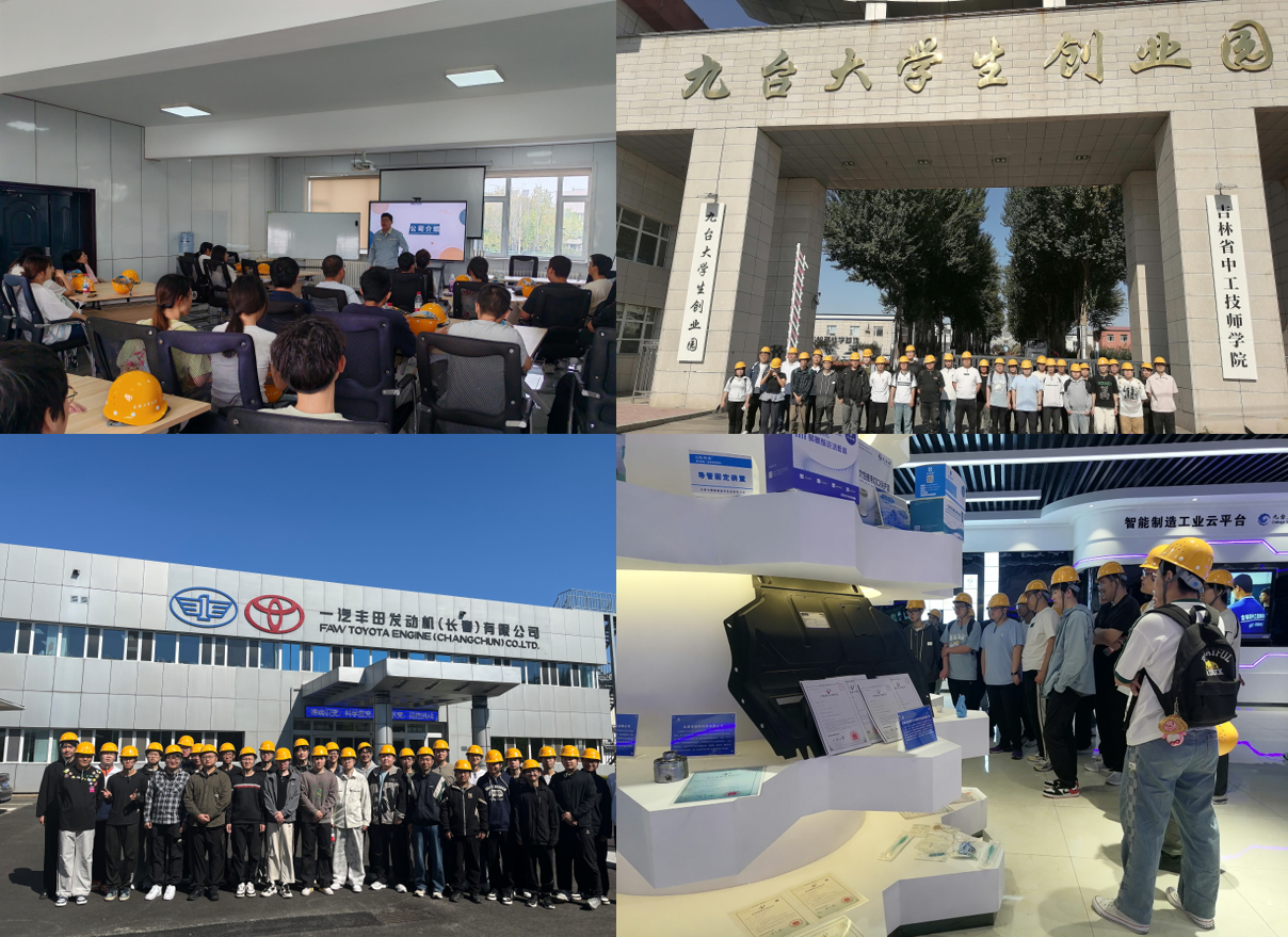 第2-3周,员工分组入驻五大实习基地,开启“沉浸式”企业实践。员工分别前往九台老员工创业园、长春泰盟机械制造股份有限公司、一汽丰田发动机、长春派格汽车塑料技术有限公司、长春汽车职业技术大学进行参观学习。