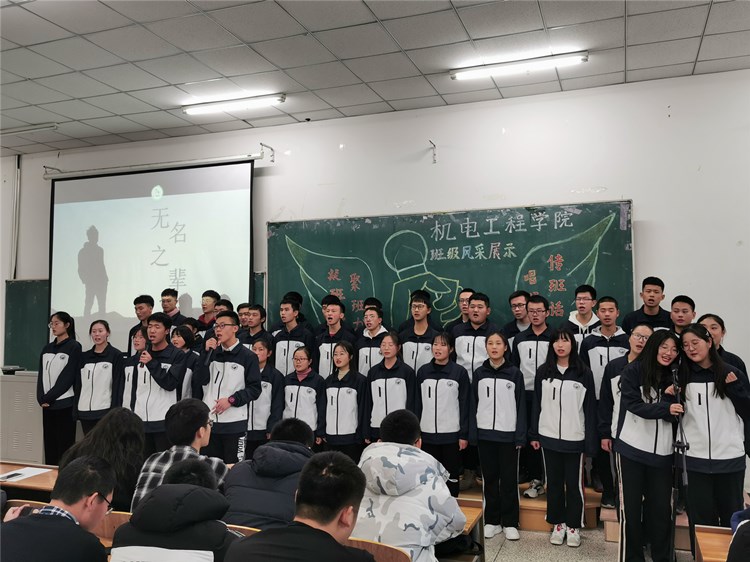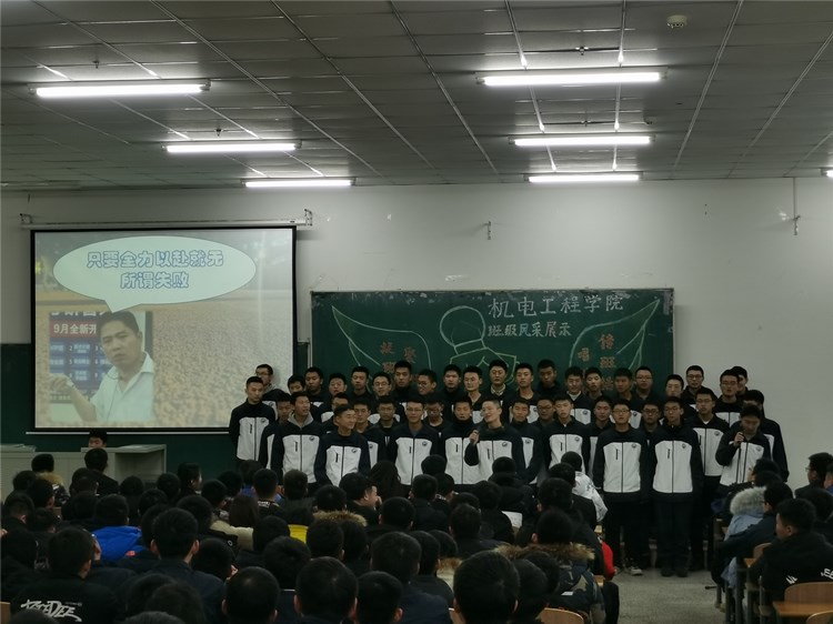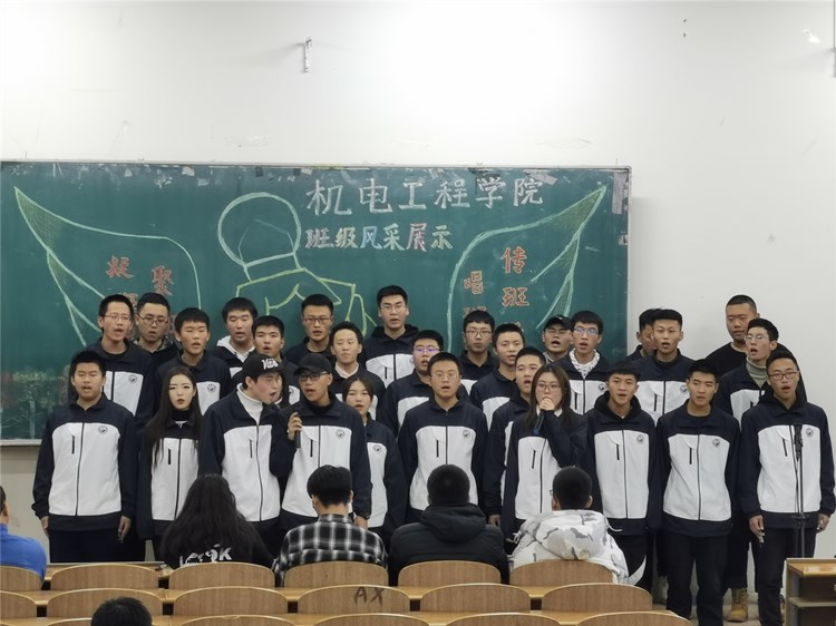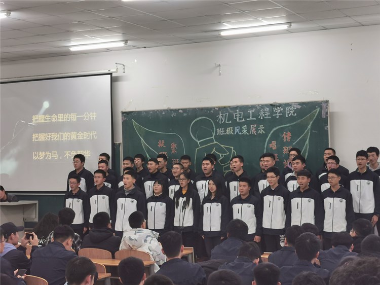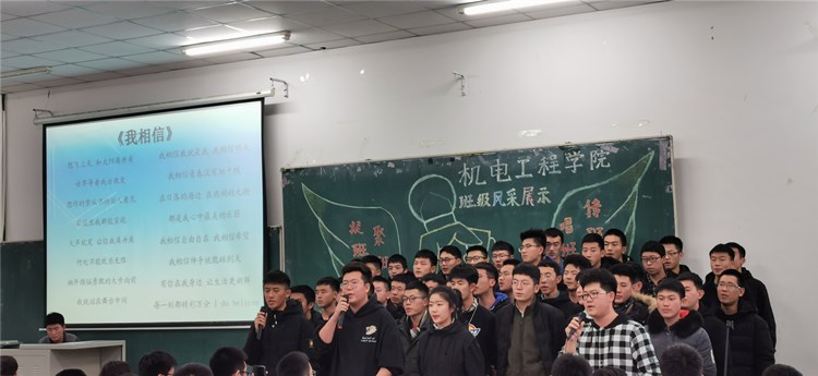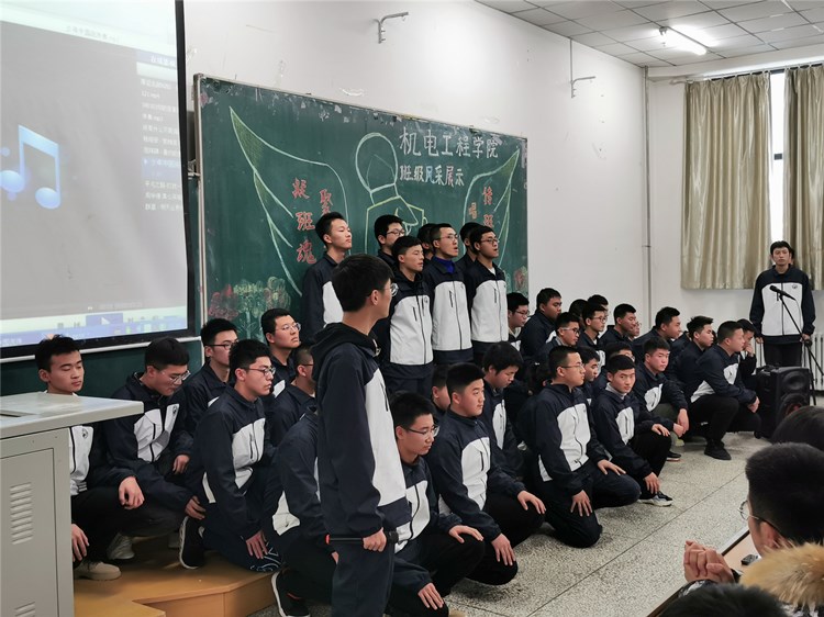 “求真尚美,勤学笃行”“鹰隼试翼,风尘翕张;坚定理想,展翅翱翔”“自信励志,合作竞争”“为梦想坚持不懈,不卑不亢”……11个班级精神慷锵有力,展示着新时代青年老员工向上向善的精神面貌。《少年中国说》《骄傲的少年》《我的梦》《我相信》《明天会更好》……11支班歌大合唱,配合用心编入的舞蹈动作、励志口号,机电“少年们”共同演绎着团结拼搏、激昂向上的班级风貌。