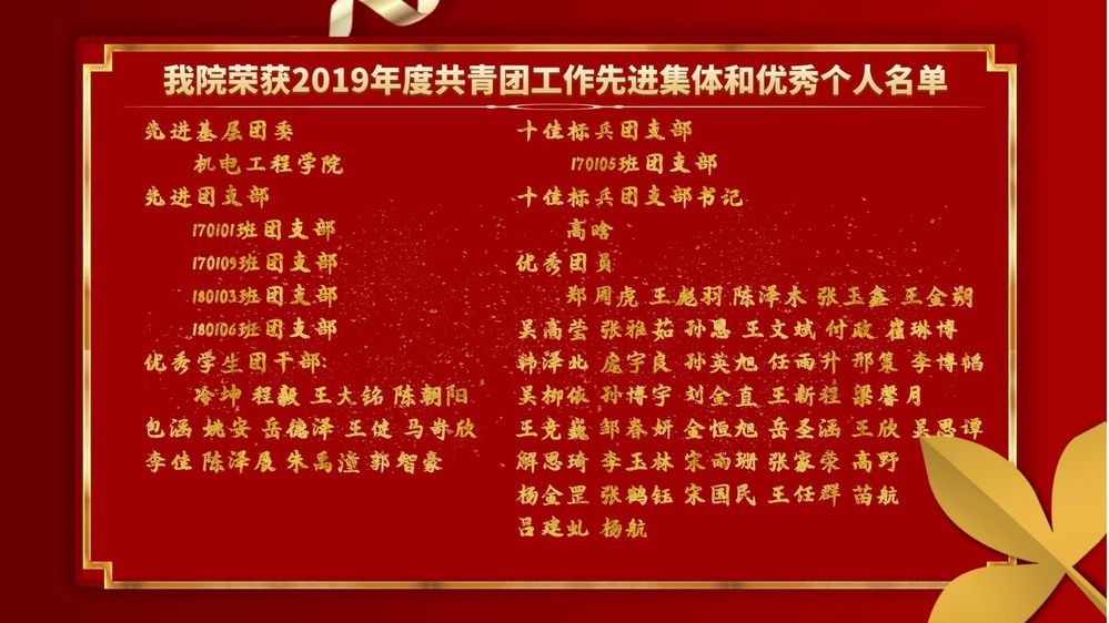 170101班团支部、170109班团支部、180103班团支部、180106班团支部荣获先进团支部称号;