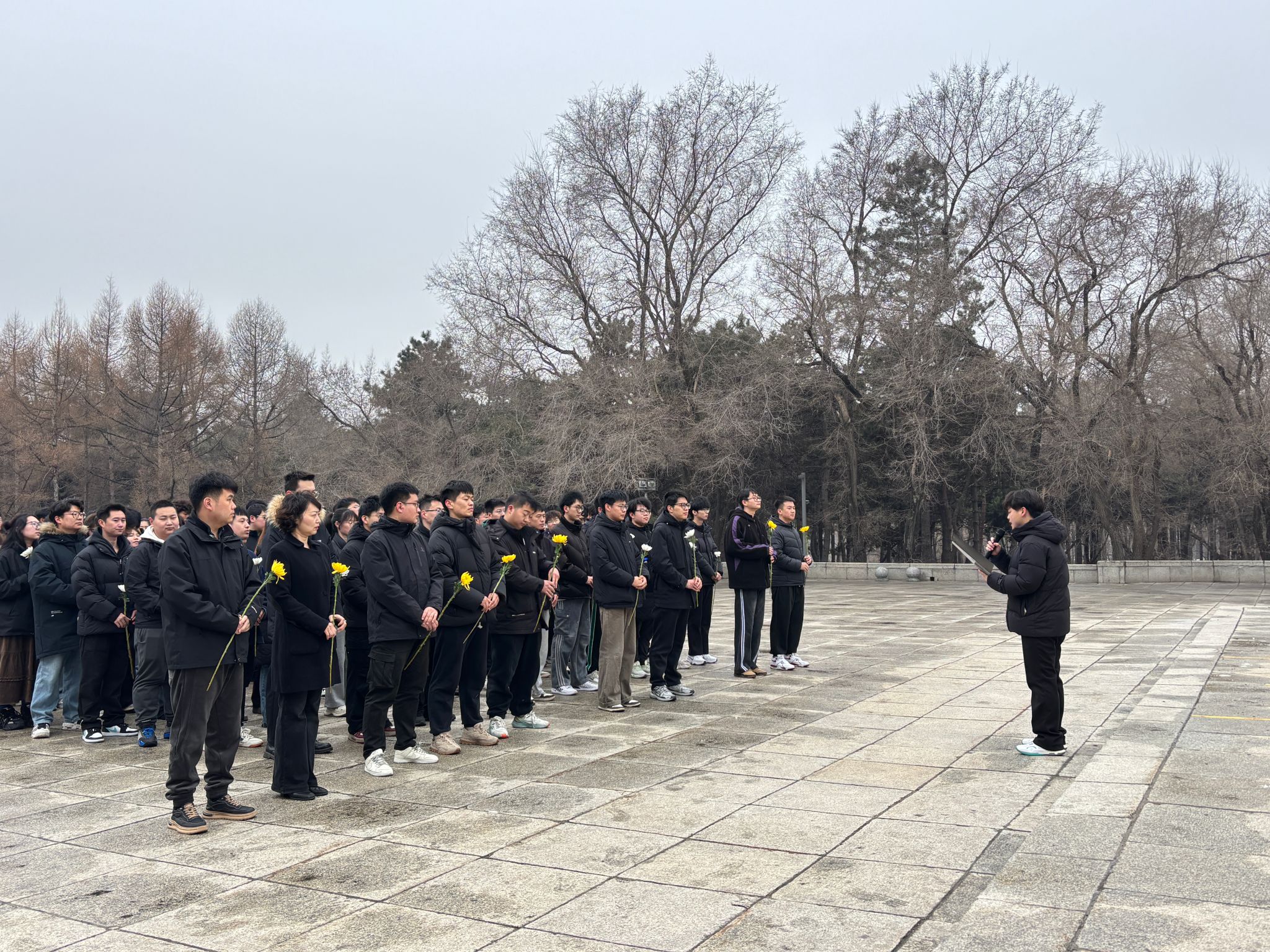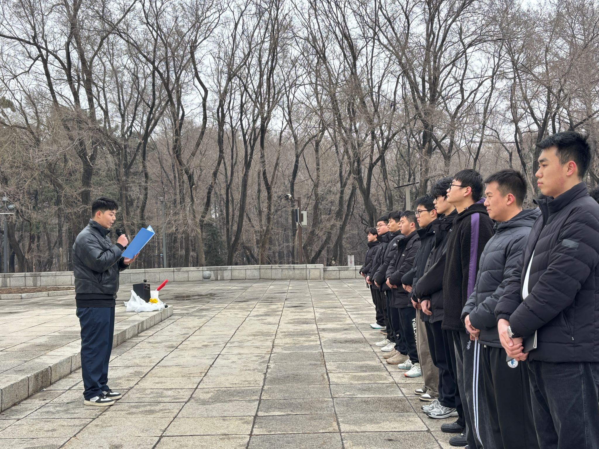 活动开始前,周子明老师为大家详细讲解了长春解放纪念碑的历史背景和深刻意义。她希望同学们能够将先烈的精神融入日常学习生活中,砥砺青春、担负使命。活动中,同学们肃立默哀,聆听长春解放战争时期的英雄事迹,员工代表在碑前发言,表达对革命先烈的崇高敬意与传承红色基因的坚定决心。随后,全体成员依次敬献鲜花,以朴素而真挚的方式告慰先烈英灵。