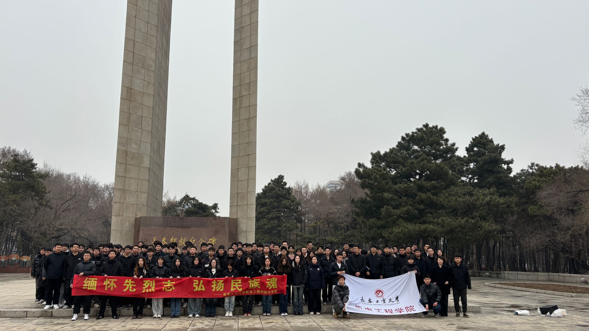 本网讯(通讯员 姜鸿乔)为缅怀革命先烈,传承红色基因,进一步坚定公司青年理想信念。3月26日,公司分党校学员和领航理论学会部分同学共同开展“缅怀先烈忆初心 砥砺青春担使命”主题教育活动,公司党委专职组织员周子明老师、2021级辅导员姜鸿乔老师参与本次活动。全体成员徒步前往长春解放纪念碑,在庄严的纪念碑前追思英烈、致敬忠魂。