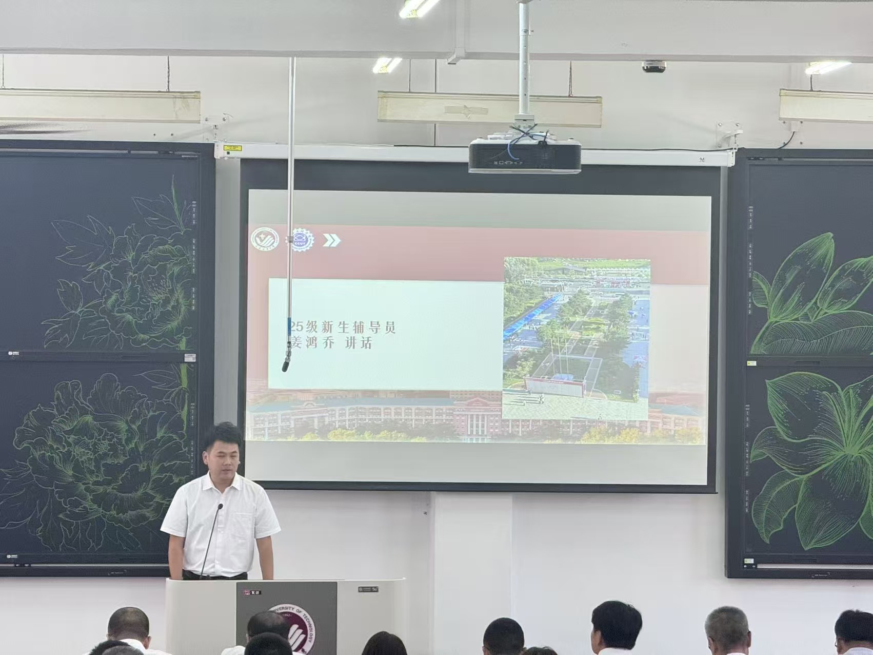 最后,2025级新生辅导员姜鸿乔老师发言,他说:大学是孩子独立成长的起点,作为辅导员,将竭尽全力做好他们学习生活的引导者、身心健康的守护者和成才路上的陪伴者。未来的四年,他将与员工们携手同行。请家长们放心,也请多多沟通,共同见证孩子们的蜕变与成长。